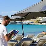 Es gibt zudem eine Kaffee- Bar mit WLAN und einem TV. Das Restaurant Bonatsa ist 15 Minuten Fahrt vom Mykonos Dove Beachfront Hotel entfernt.